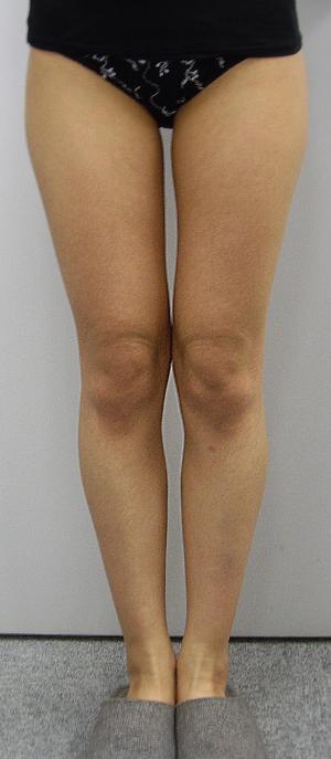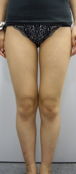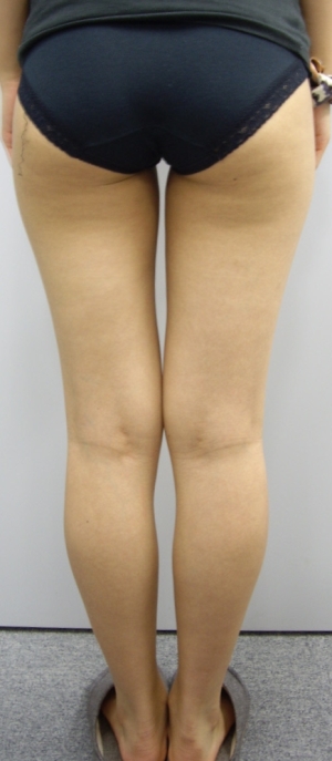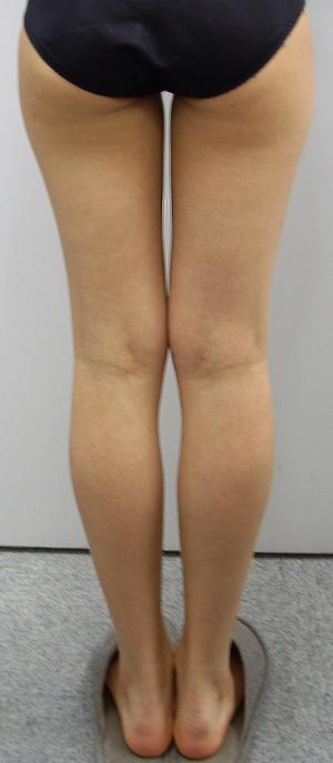 また、大腿内側部や外側部には直接ガスを注入していませんが、前面と後面に注入したガスの拡散により痩身効果が現れ、大腿部同士の間に隙間が認められます。さらに、大転子レベル(太ももの付け根の外側のところ)の横幅もやや狭くなっています。
